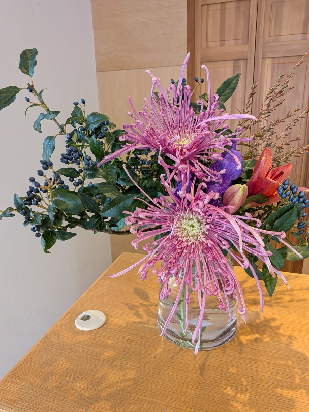 BLOG Home › BLOG › お花とお知らせ お花とお知らせ めっきり朝晩冷え込んできましたね ようやく冬到来です。 さて12月の営業のお知らせです。 12/30日までの営業となりまして 12/29の月曜日は営業させていただきます。 何かとあわただしくなる時期ですがご来店お待ちしております。 ティフワニーさんからお花が届きました。 インパクトのある菊いい感じです。 ではまた。 2025年11月11日 | Posted in BLOG | | No Comments » 関連記事 Xmasリース お花 お知らせ お花とお知らせ お花 < お花 Xmasリース >